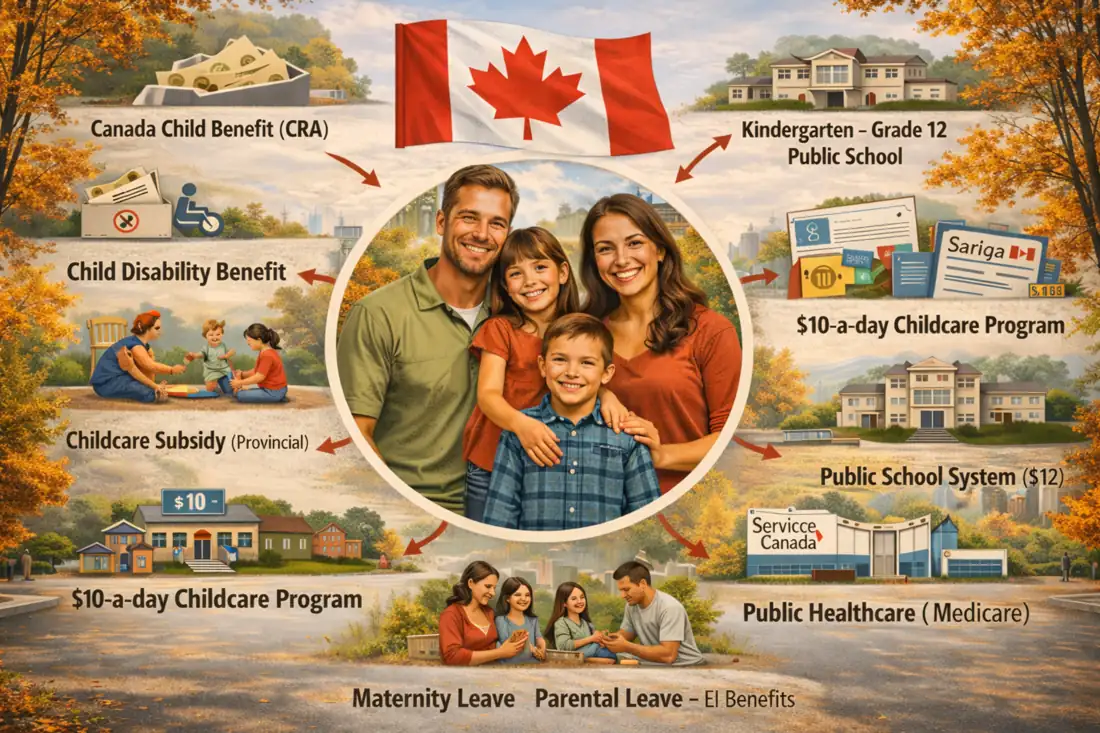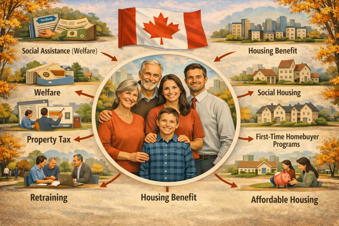Social Assistance (Welfare) hỗ trợ người thu nhập thấp hoặc khó khăn tài chính.