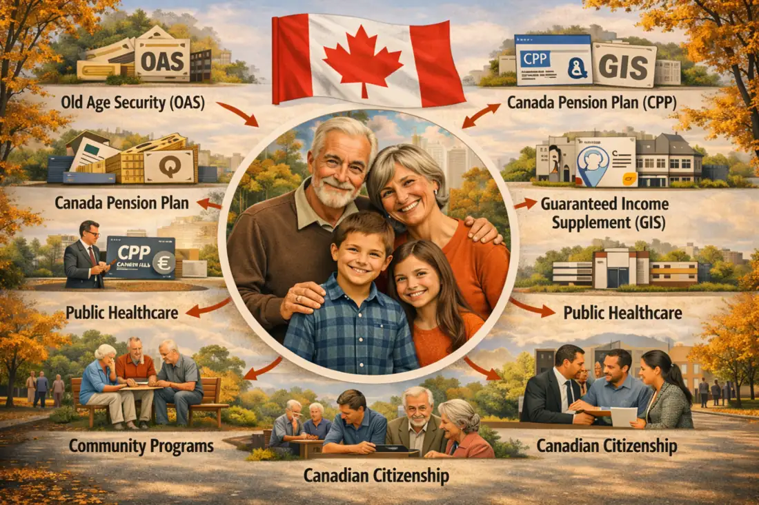 Quỹ phúc lợi an sinh xã hội của Canada sẽ hỗ trợ cho Thường trú nhân hoặc công dân mang quốc tịch Canada mà thất nghiệp hoặc hoặc trợ cấp hưu trí cho người già.