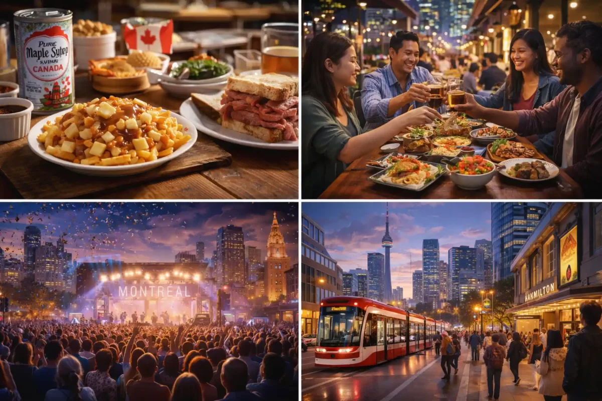 – Món nổi tiếng: poutine, maple syrup, smoked meat Montréal.