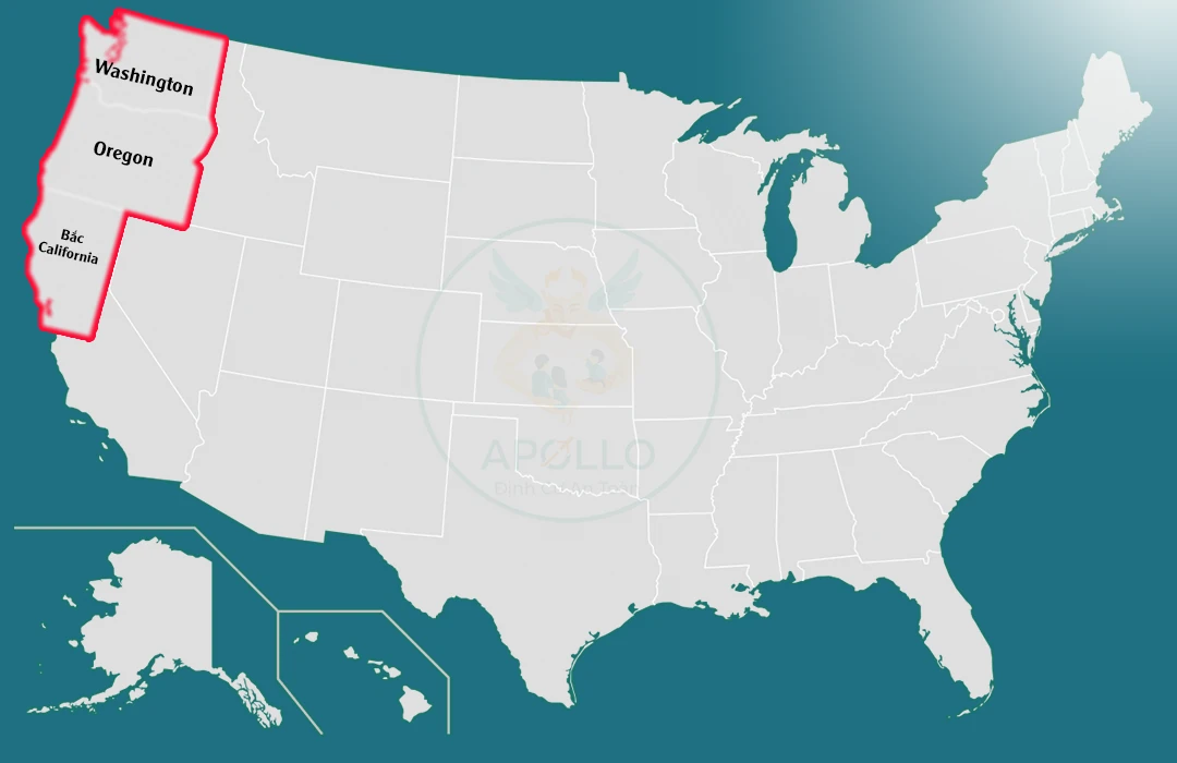Bang: Washington, Oregon, Bắc California (ven biển).