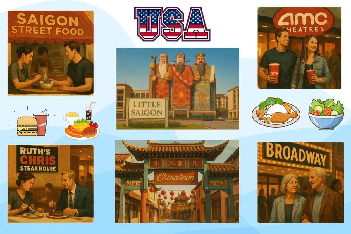 3️⃣ Dịch vụ ăn uống & giải trí tại Hoa Kỳ