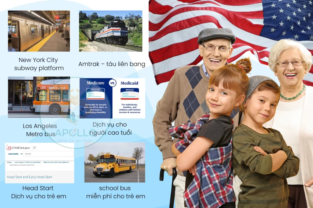 – 👵 Dịch vụ cho người cao tuổi: trung tâm sinh hoạt cộng đồng, bữa ăn miễn phí hoặc giá rẻ, Medicare & Medicaid nếu đủ điều kiện.