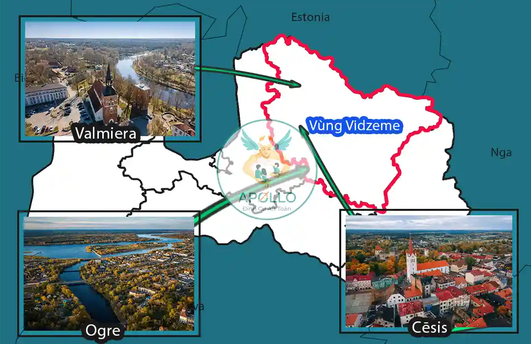 – Thành phố tiêu biểu: Valmiera là trung tâm phát triển chính; ngoài ra còn có Cēsis, Ogre, Smiltene.