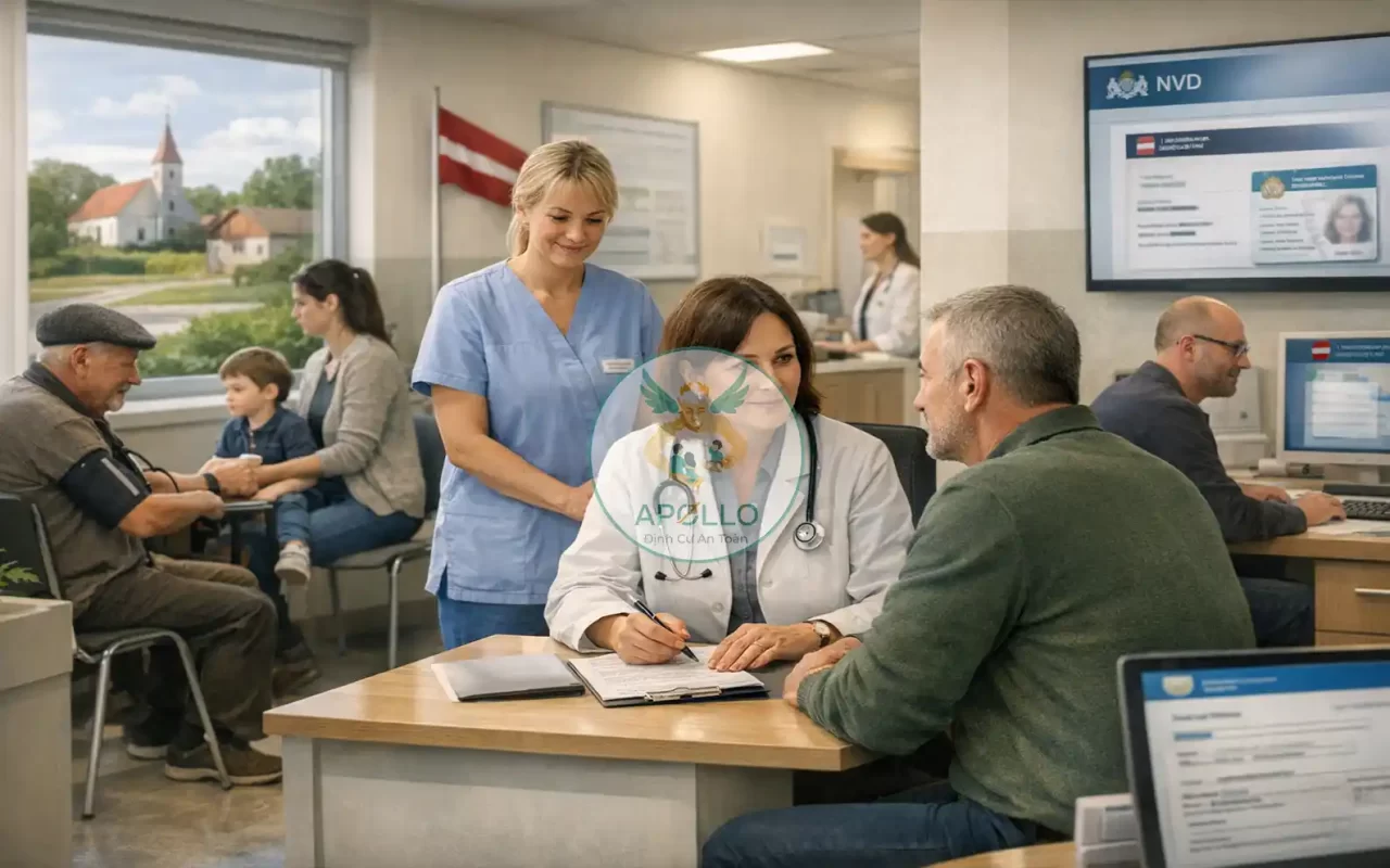 – Hệ thống y tế Latvia vận hành với vai trò nổi bật của family doctor / ģimenes ārsts, tức bác sĩ gia đình, như điểm tiếp xúc đầu tiên của người dân với dịch vụ khám chữa bệnh.
