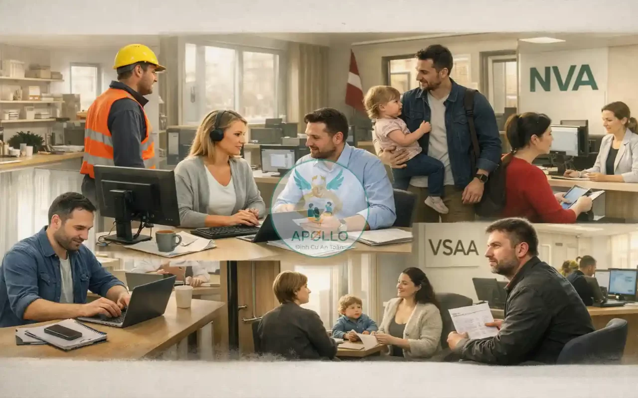 • Điểm đặc trưng là an sinh gắn với đóng bảo hiểm, hoàn cảnh hộ gia đìnhnơi cư trú; nhiều hỗ trợ thực tế do municipality social service / sociālais dienests tại địa phương giải quyết.
