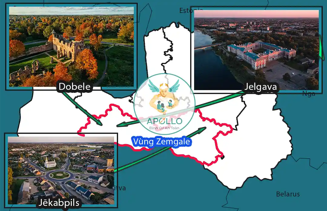 – Thành phố tiêu biểu: Jelgava là trung tâm lớn nhất; ngoài ra có Jēkabpils, Bauska, Dobele, Aizkraukle.