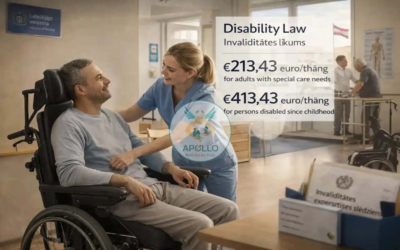 – Việc xác định tình trạng khuyết tật được điều chỉnh bởi Disability Law / Invaliditātes likums, và việc giám định lần đầu hoặc tái giám định do State Medical Commission for the Assessment of Health Condition and Working Ability thực hiện.